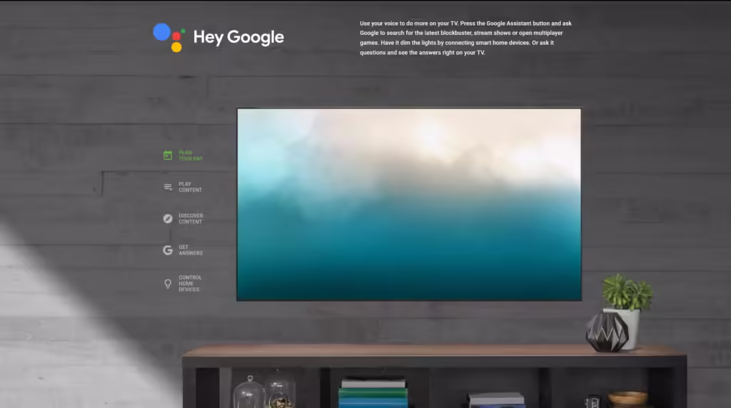 Android TV comes with built-in support for the Google Assistant, allowing you to perform tasks like searching for content, controlling your smart home devices, setting alarms or reminders, getting information, and asking questions by pressing the microphone button on the remote control or using voice commands.